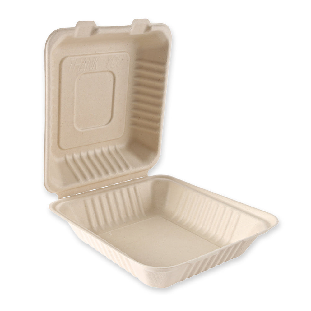 Disse firkantede madkasser er den bæredygtige løsning til alle dine takeaway-måltider , leveringstjenester eller til at pakke rester efter at have spist ude. De miljøvenlige madkasser er udelukkende lavet af naturlige sukkerrørfibre , også kendt som bagasse. Bagasse er et biprodukt fra industriel sukkerproduktion, der ellers ville blive bortskaffet. Som miljøvenligt engangsservice får disse værdifulde, holdbare fibre et nyt formål.